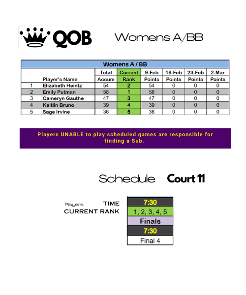 Warm-Up Monday KOB/QOB League