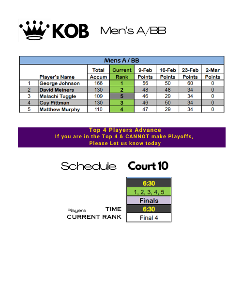 Warm-Up Monday KOB/QOB League